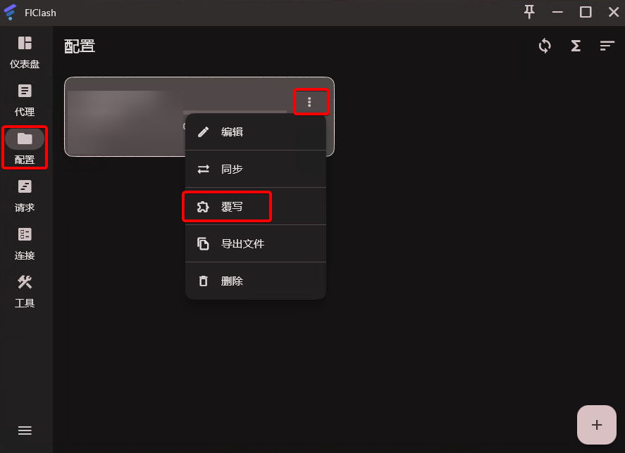 打开配置选项卡,点击配置文件右上角图标,选择覆写
